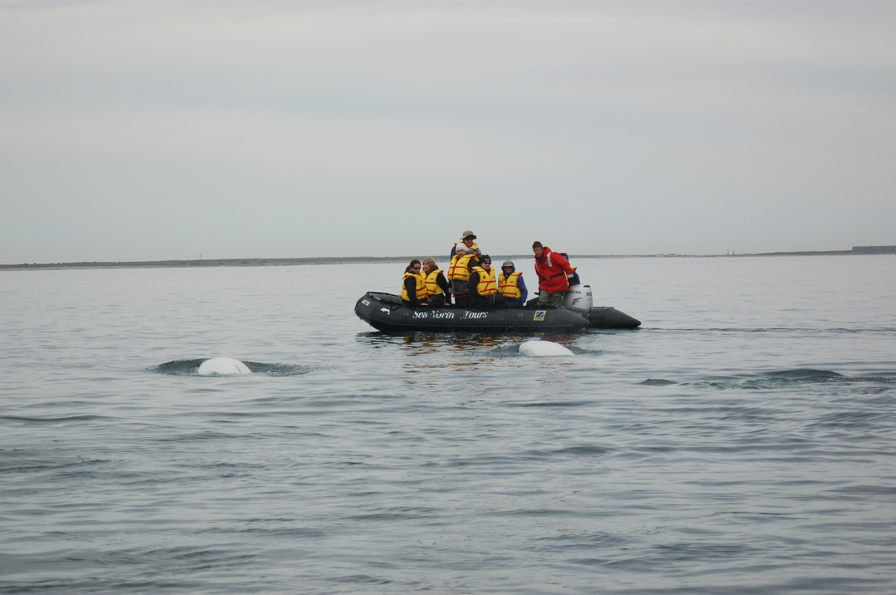 No single day is the same out on the water either in the Churchill River or the Hudson Bay. Weather has a huge influence on whale behavior. Calm, placid days allow whales to fish for capelin with no effort…continuously breaking the glass-like plane of the water’s surface. Other windy,choppy days make for more erratic behavior..often making the sightings less unique. Whales stay lower in the water though the experience is just as intense…being with these magnificent creatures in the wild northern waters.