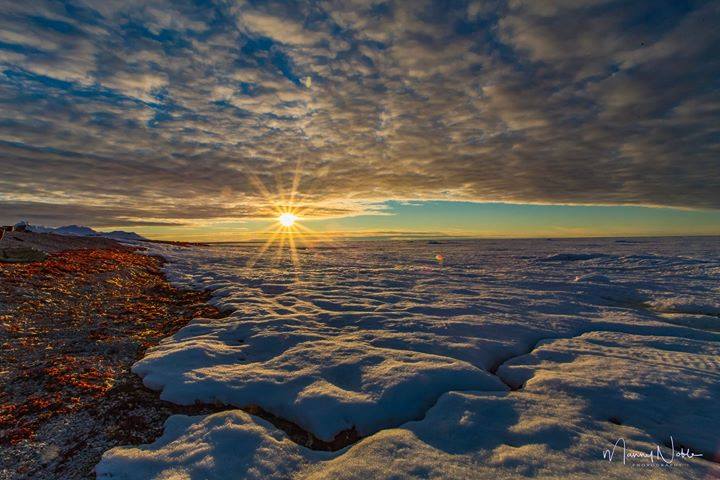 This breathtaking photograph of the midnight sun emerging from the clouds on the horizon in Hall Beach, Nunavut is one of the best shots we have ever seen of the northern summer phenomena! The community has a population of around 850 and is located in the Qikiqtaaluk Region. Enjoy! The region is the easternmost area of Nunavut and the name is the Inuktitut word for Baffin Island. Enjoy!