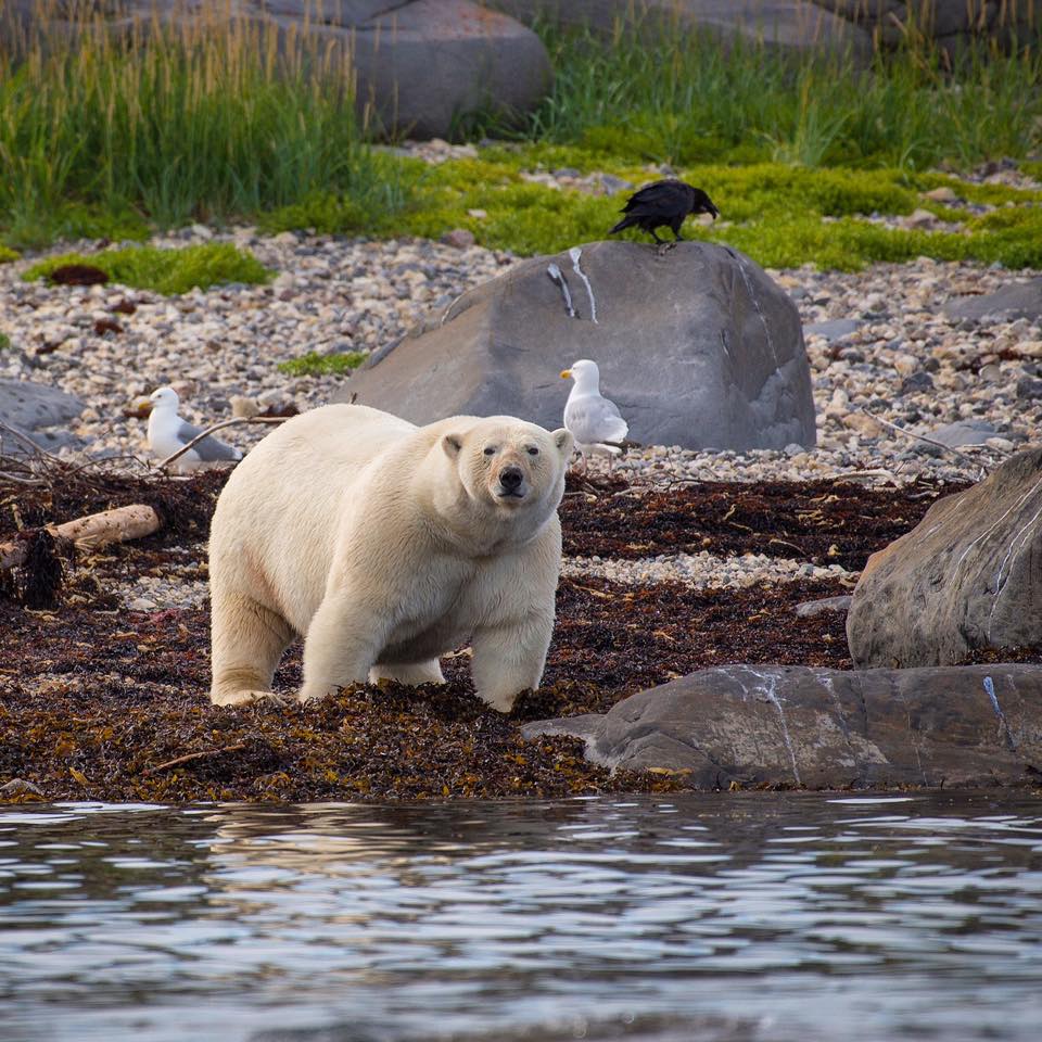 Polar bear, two gulls and raven in Churchill. Alex De Vries – Magnifico photo.