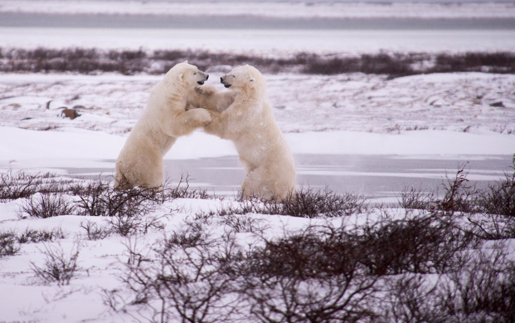 Polar bear males sparring on the tundra. Moira Le Patourel photo.