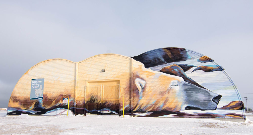 After enjoying a sunset across the Churchill River at the flats just northwest of town, the group also was blessed with aurora borealis on their second night in Churchill. Nearly as spectacular to this particular group of travelers was the fantastic newly painted murals around town by the Sea Walls project. The murals brighten up the town, which can start to become grey this time of year, as much in the daytime as northern lights do at night.