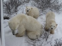 As the town settles in to some quality “inside” time with self or families, the polar bears are out on the ice hunting seals in their frozen dens. Moms with cubs are nestled in their own dens in and around Wapusk National Parc..living the Winter out with anticipation of emerging into the world in March. Then they will head to the ice to gain the experience of hunting together on the ice pack.