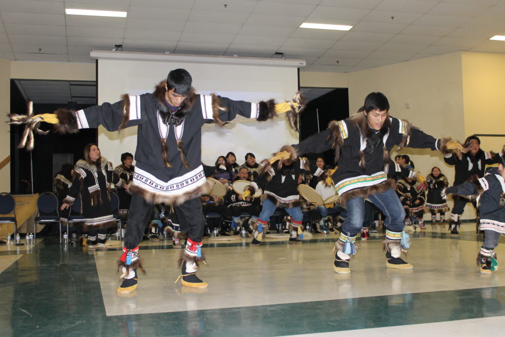 Drum dancing at the Inuvik Sunrise Festival. Lu North photo.