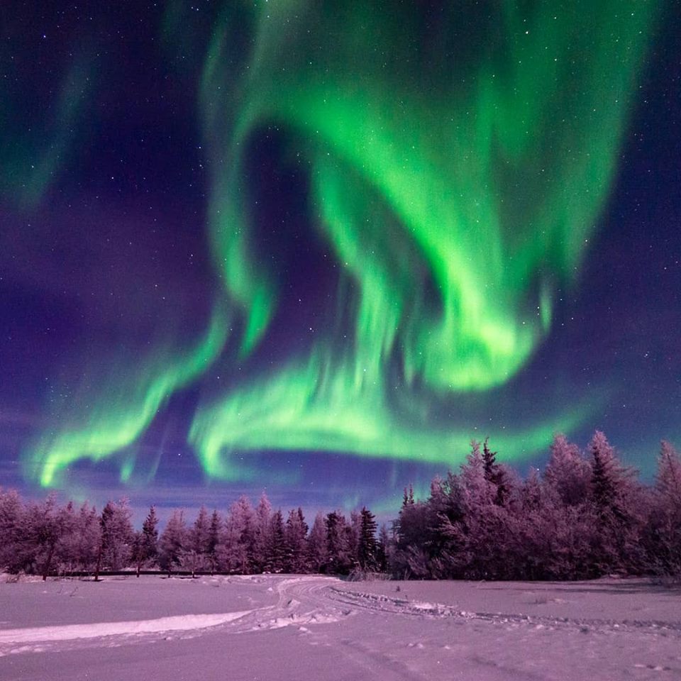 This open landscape vista of northern lights and a lone snowmobiler exudes the vastness of the barren north. Tantalizing northern lights can portray even the most inauspicious scene as incredibly wondrous and mystical. Aurora borealis in Churchill and the surrounding Arctic have been off the charts lately and we continue to discover the most beautiful images from all across the region. Enjoy!