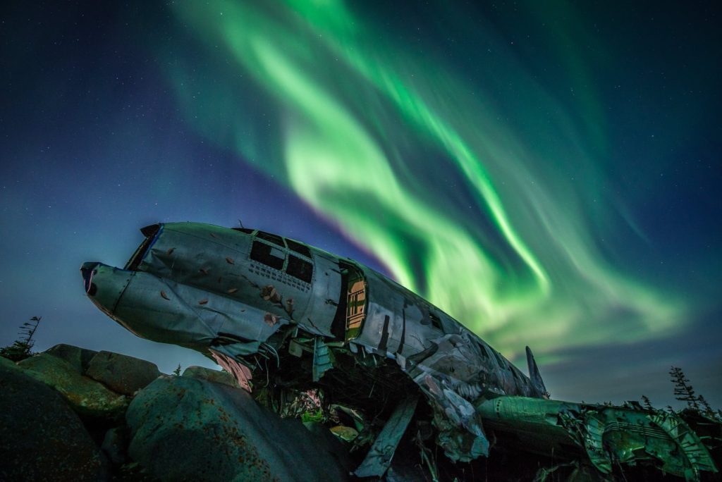 Aurora Borealis above the Ithaca shipwreck in Churchill. Andre Brandt photo.
