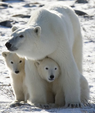 Mother polar bears avoid having their cubs swim in the ocean until they have the fat reserves to protect them. Jonathan Hayward photo.