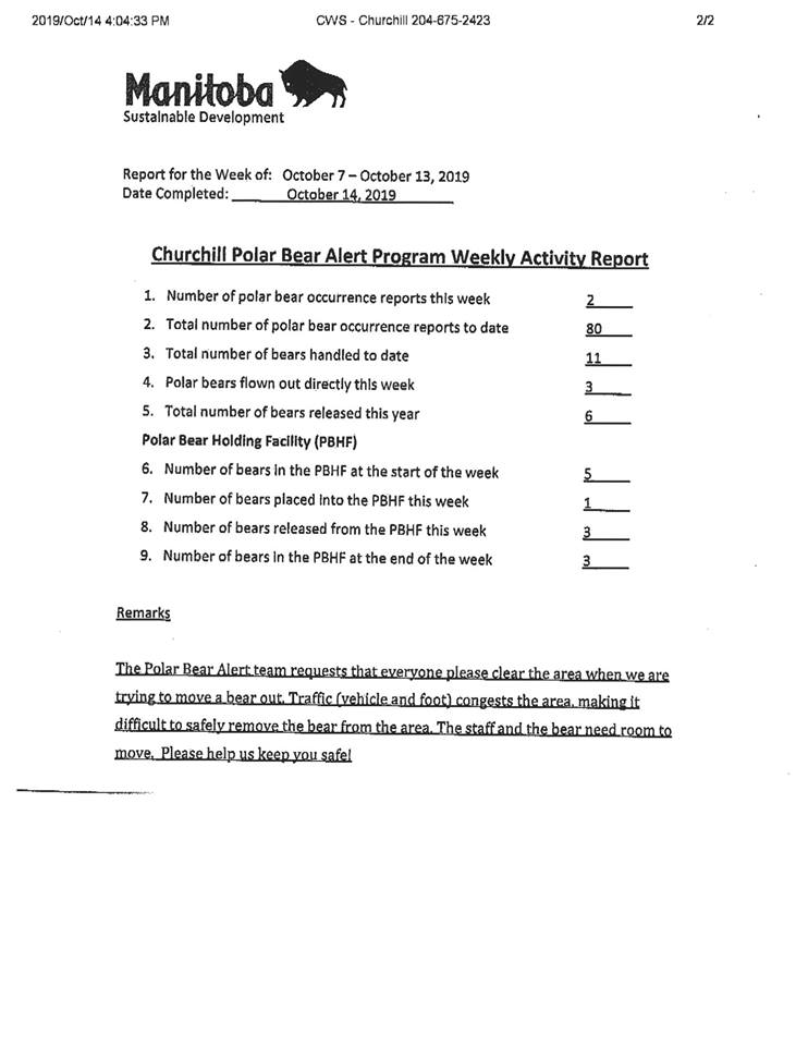 Polar bears are congregating in the Churchill area with the polar bear season underway. Three bears are in the Polar Bear Holding Facility at this point and that number should increase as the week goes on. Stay posted to the site to stay current on polar bear numbers in the region.